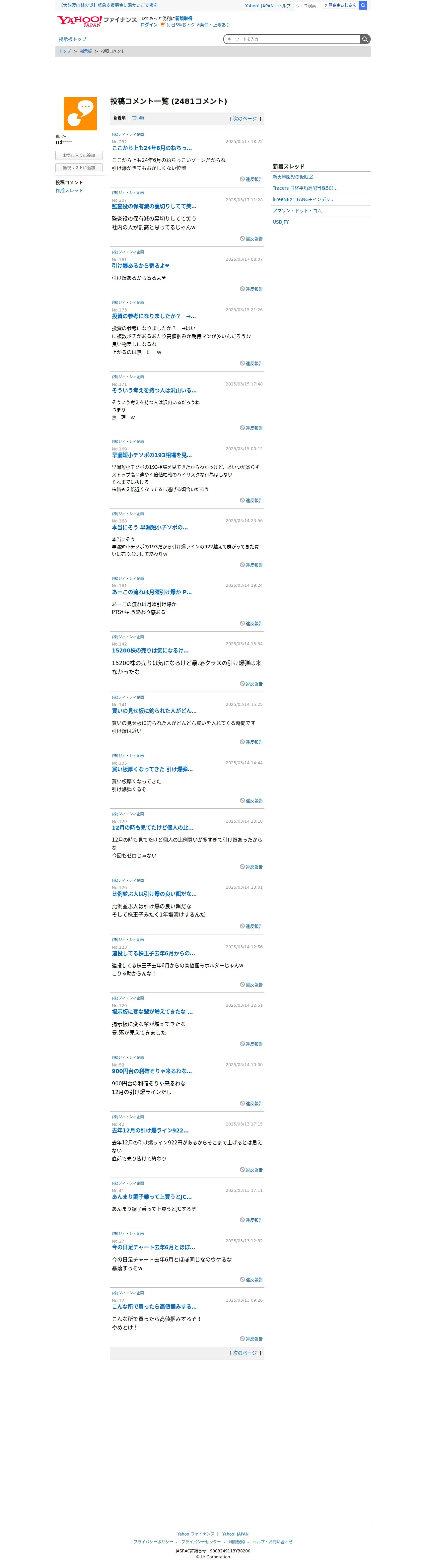https://finance.yahoo.co.jp:443/cm/personal/history/comment?user=d302ef691dddc78f1a614e56c90b4c4c6691e45968ad123457aa4450624e18c3