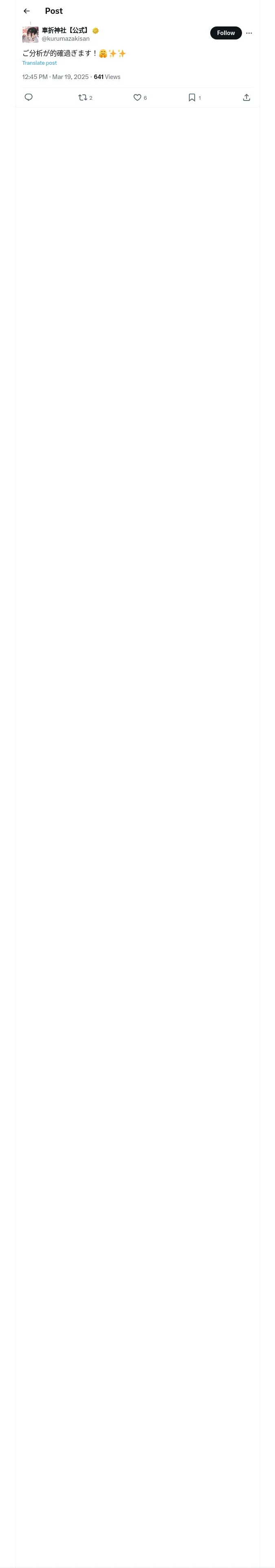 https://x.com:443/kurumazakisan/status/1902204810792988810?t=WKgyo9HYkiXe7yhfiRO7xw&s=19