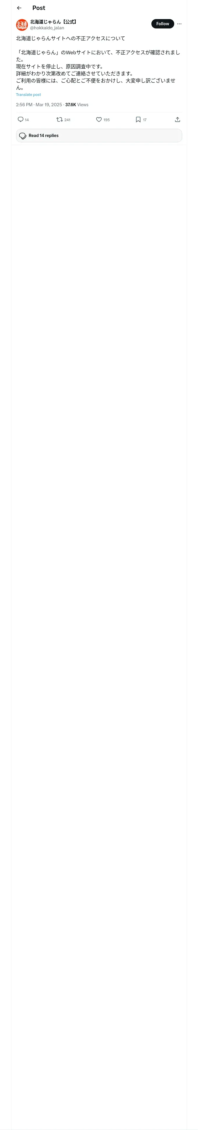https://x.com:443/hokkaido_jalan/status/1902237762218349024?ref_src=twsrc%5Egoogle%7Ctwcamp%5Eserp%7Ctwgr%5Etweet