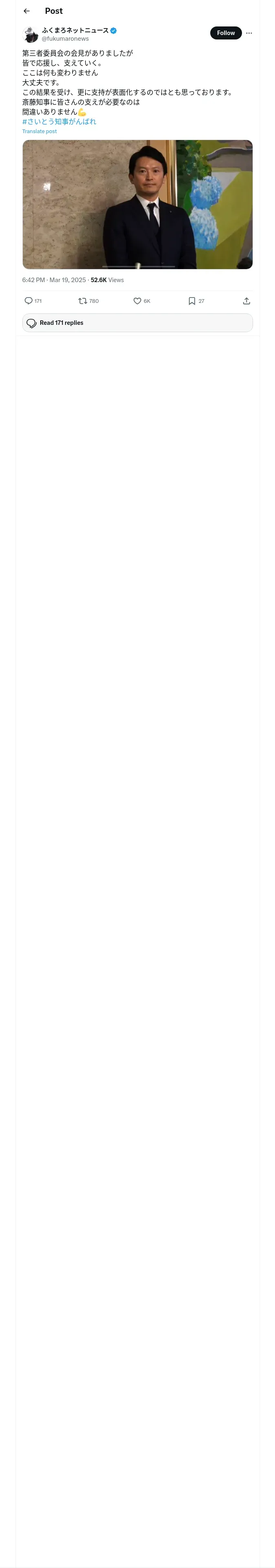 取得元URL: https://x.com:443/fukumaronews/status/1902294562489692227