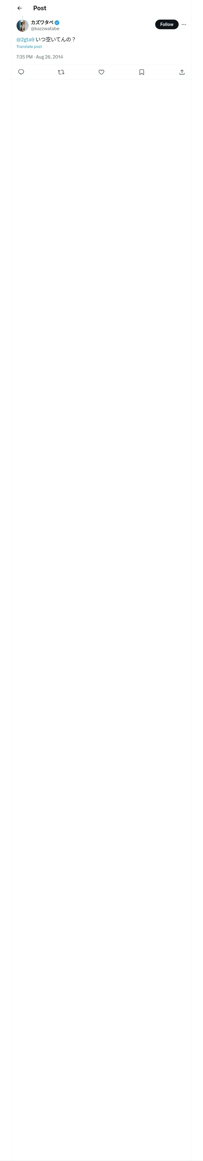 取得元URL: https://x.com:443/kazzwatabe/status/504215592220368896