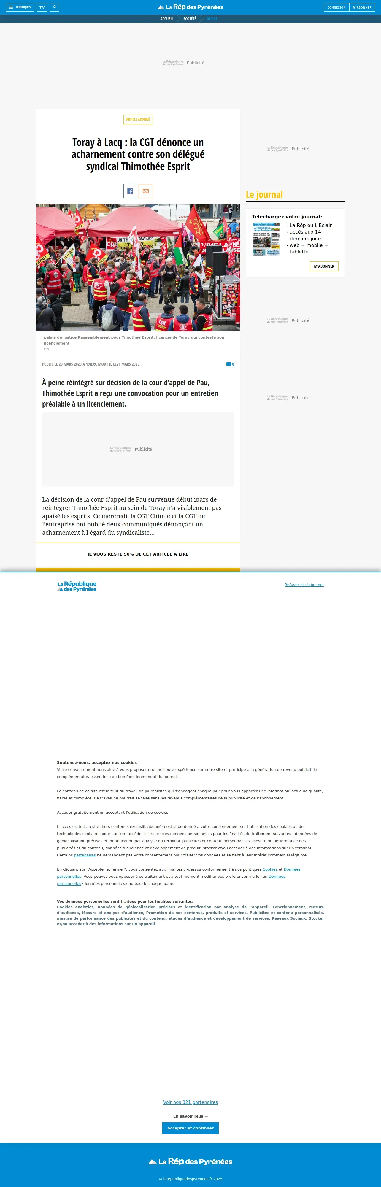https://www.larepubliquedespyrenees.fr:443/societe/social/toray-a-lacq-la-cgt-denonce-un-acharnement-contre-son-delegue-syndical-23716913.php