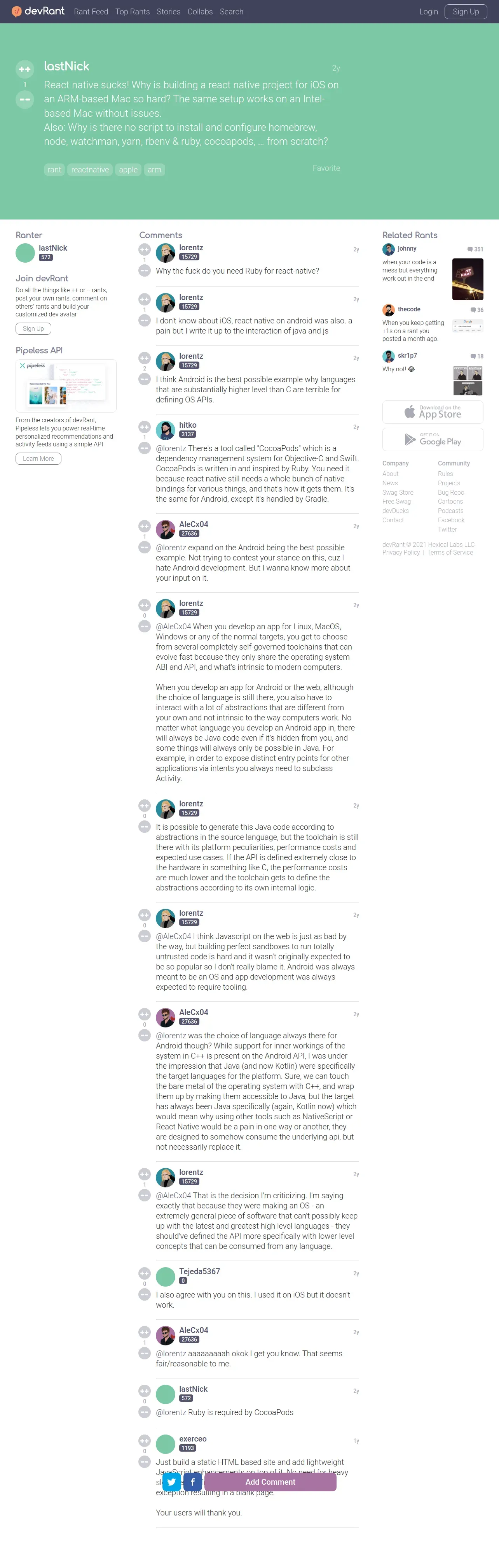 https://devrant.com:443/rants/7408252/react-native-sucks-why-is-building-a-react-native-project-for-ios-on-an-arm-base