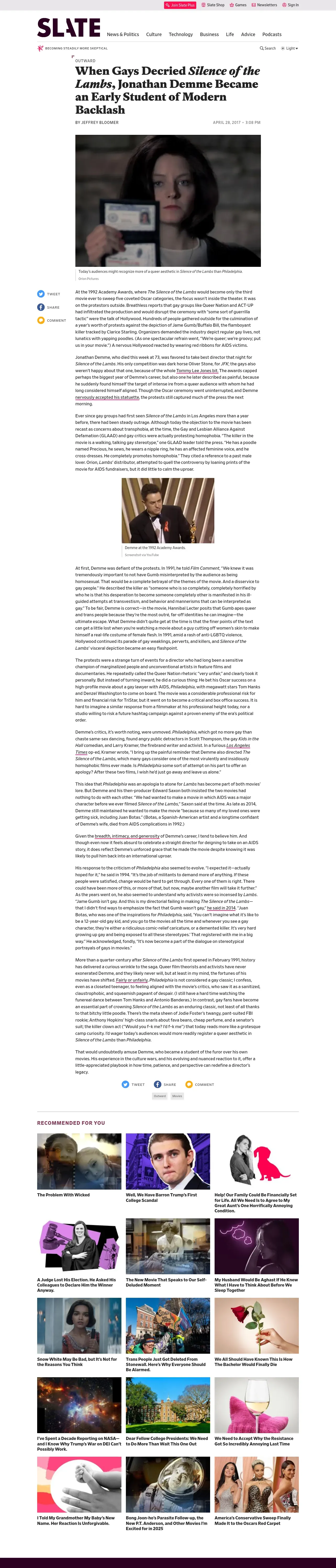 https://slate.com:443/human-interest/2017/04/director-jonathan-demme-faced-down-silence-of-the-lambs-gay-backlash.html