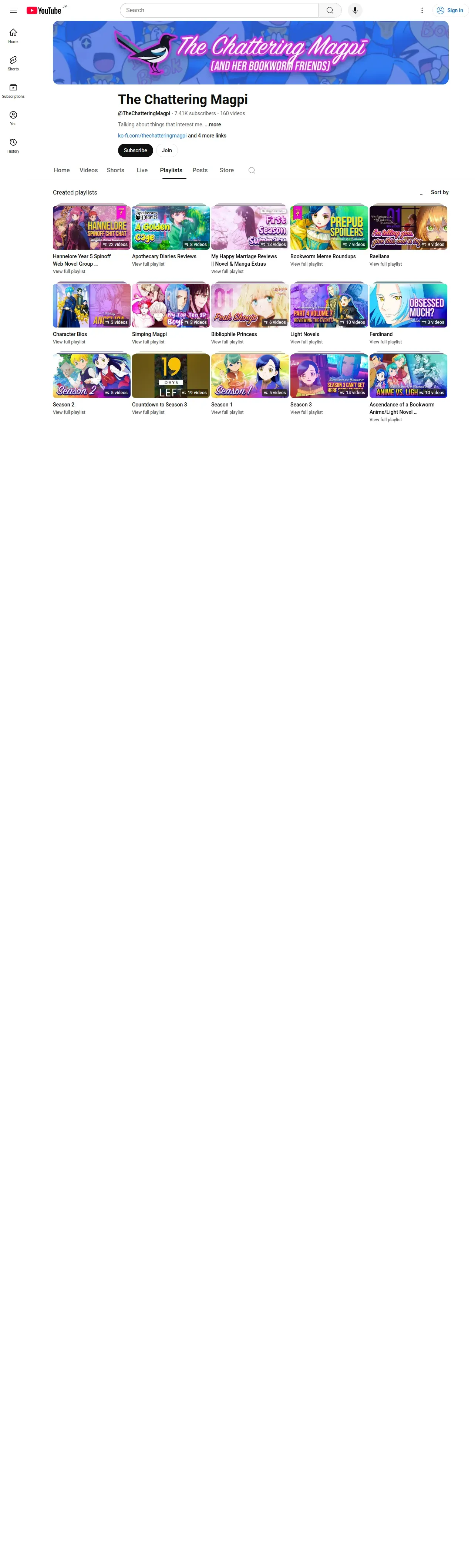https://www.youtube.com:443/@TheChatteringMagpi/playlists