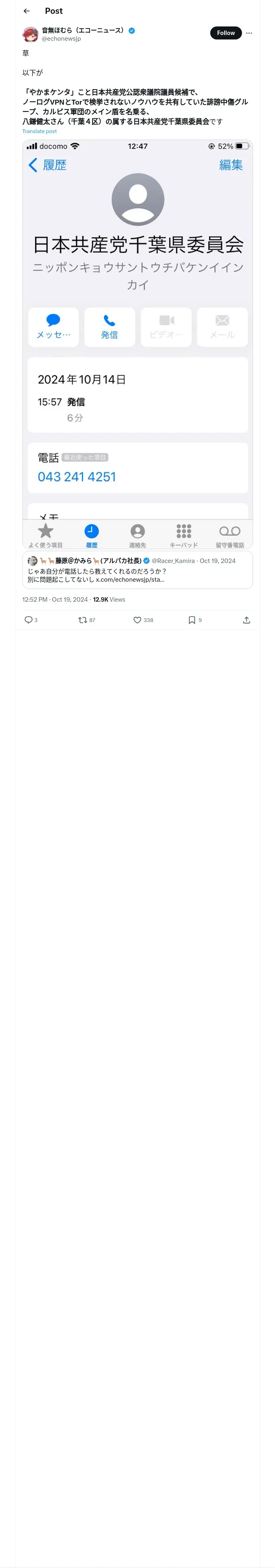 https://x.com:443/echonewsjp/status/1847485873774088300