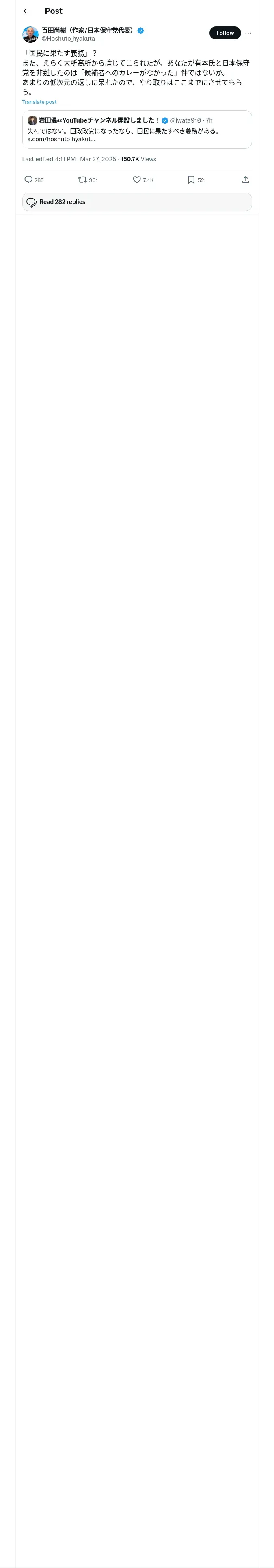 https://x.com:443/Hoshuto_hyakuta/status/1905155719784988929