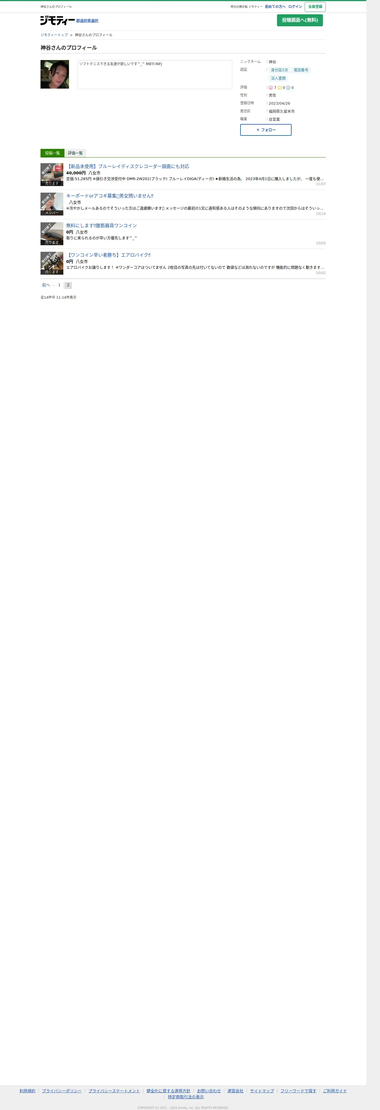 https://jmty.jp:443/profiles/644904b5652ea31535a4cb6a?page=2
