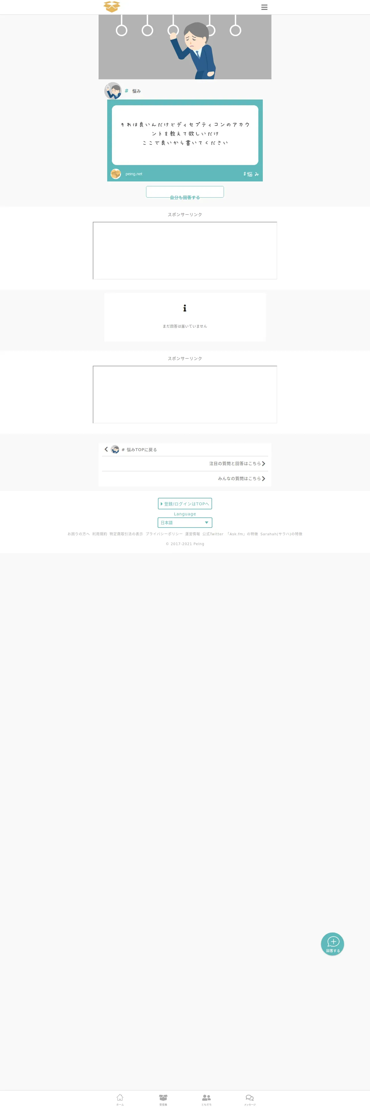 https://peing.net:443/ja/communities/24/categories/19/items/5a5e93bf-39b0-4e68-a692-54a4c067f5ae/