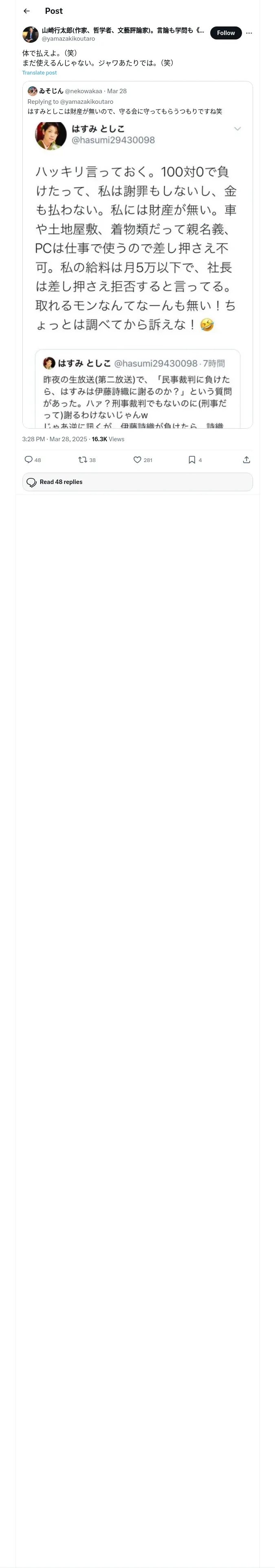https://x.com:443/yamazakikoutaro/status/1905507160567808471?t=x05eUEYCJYueVZsAeGLl-w&s=19