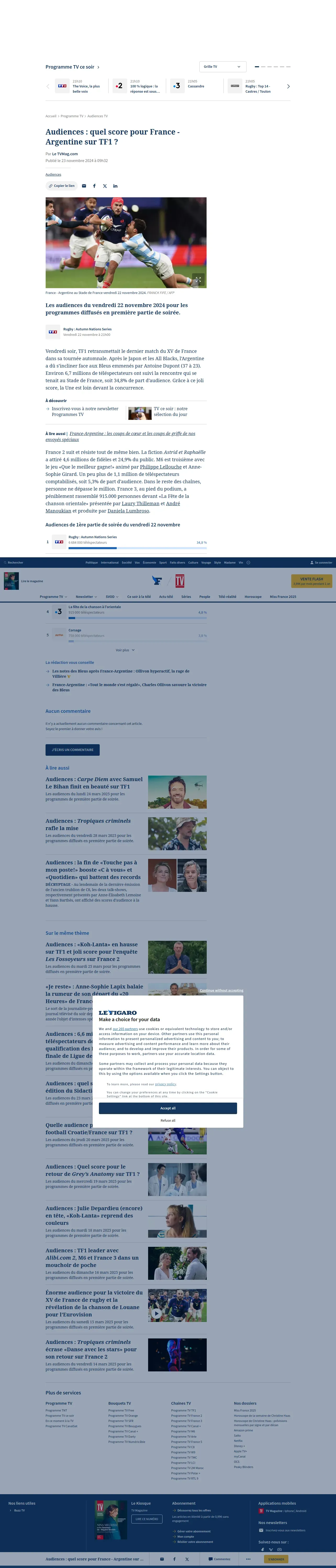 https://tvmag.lefigaro.fr:443/programme-tv/audiences-tv/audiences-quel-score-pour-france-argentine-sur-tf1-20241123