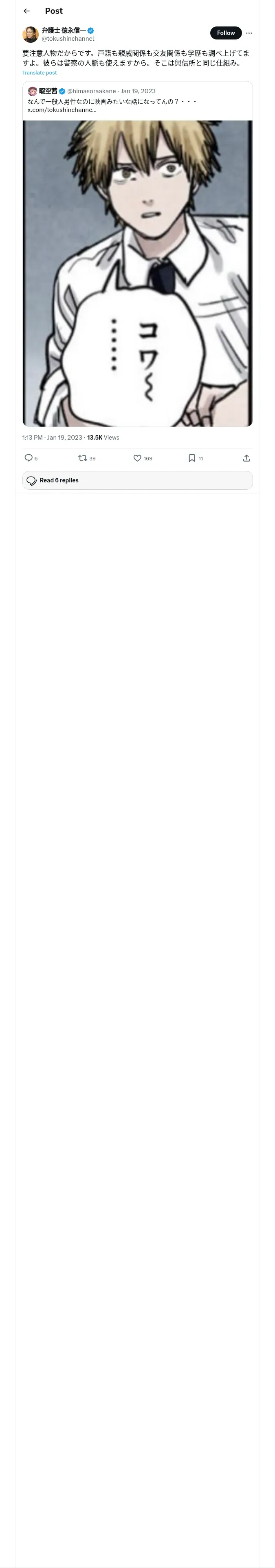 https://x.com:443/tokushinchannel/status/1615925358012026882