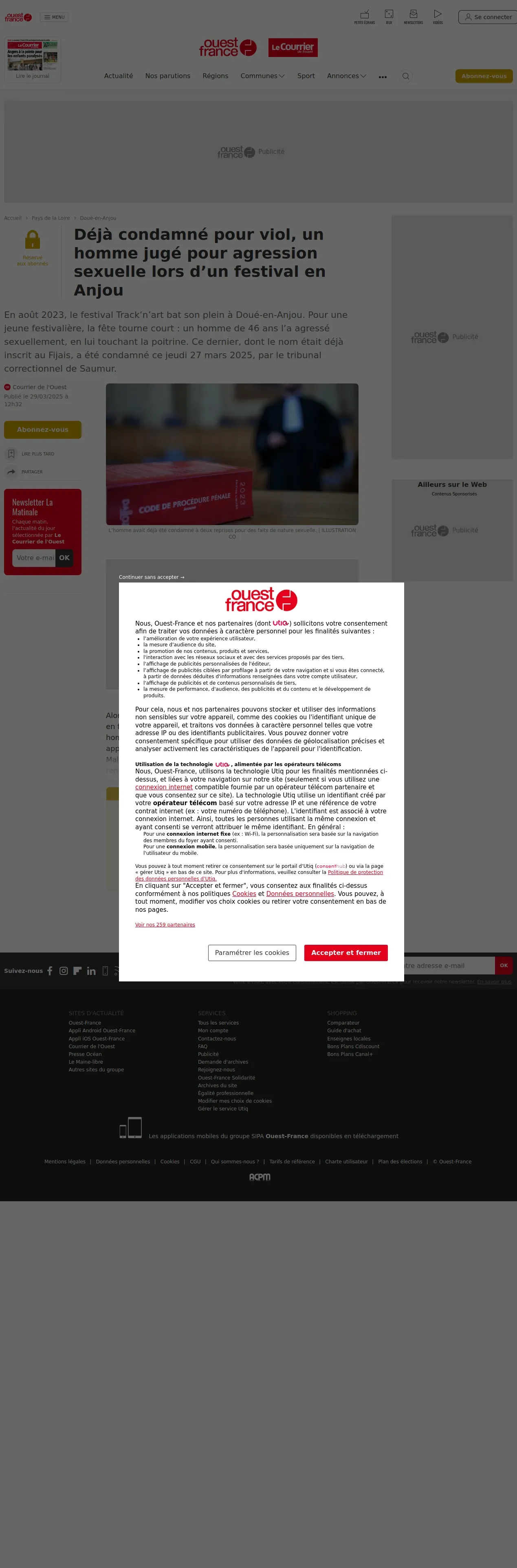 https://www.ouest-france.fr:443/pays-de-la-loire/doue-en-anjou-49700/deja-condamne-pour-viol-un-homme-juge-pour-agression-sexuelle-lors-dun-festival-en-anjou-90721628-0bbc-11f0-96cc-1b48eea9be0a