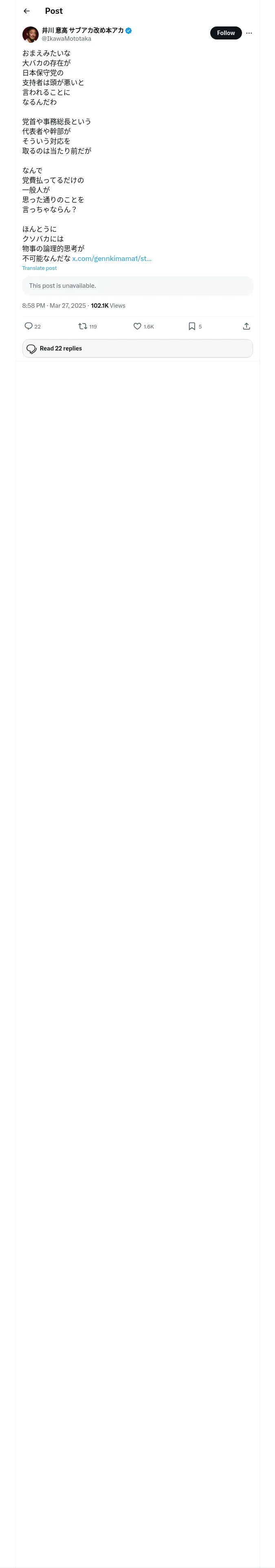 https://x.com:443/IkawaMototaka/status/1905227877366514164