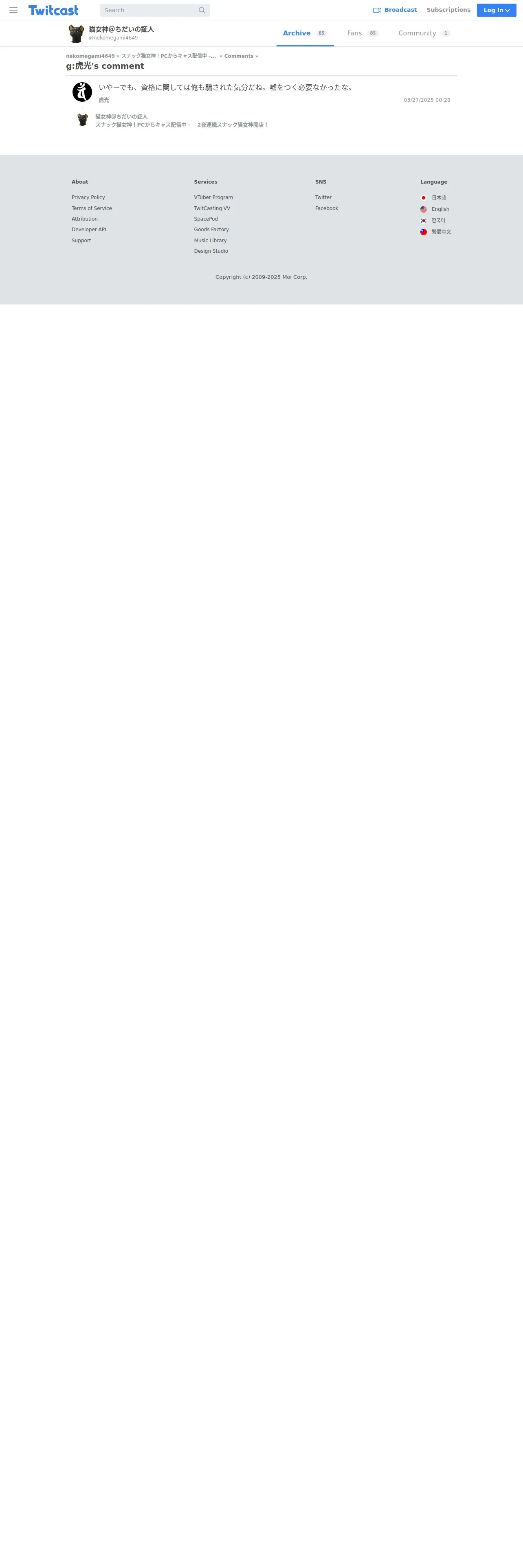 https://twitcasting.tv:443/nekomegami4649/comment/813442198-31241452969