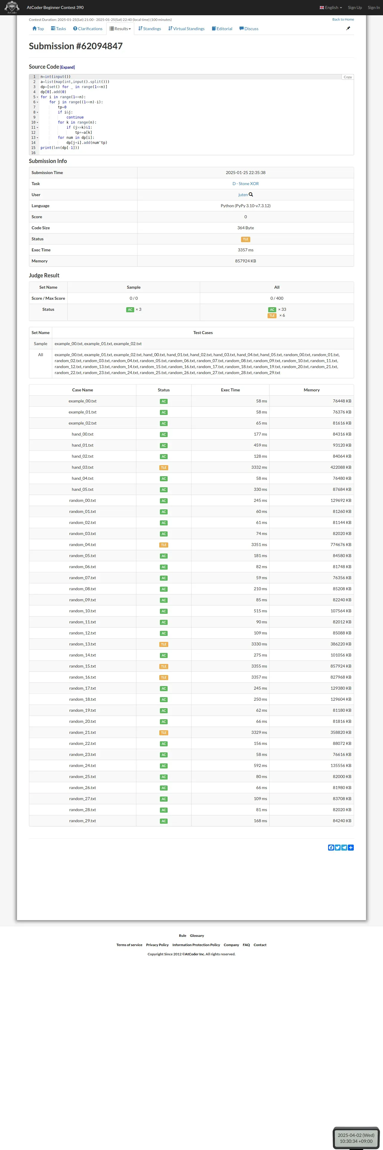 https://atcoder.jp:443/contests/abc390/submissions/62094847