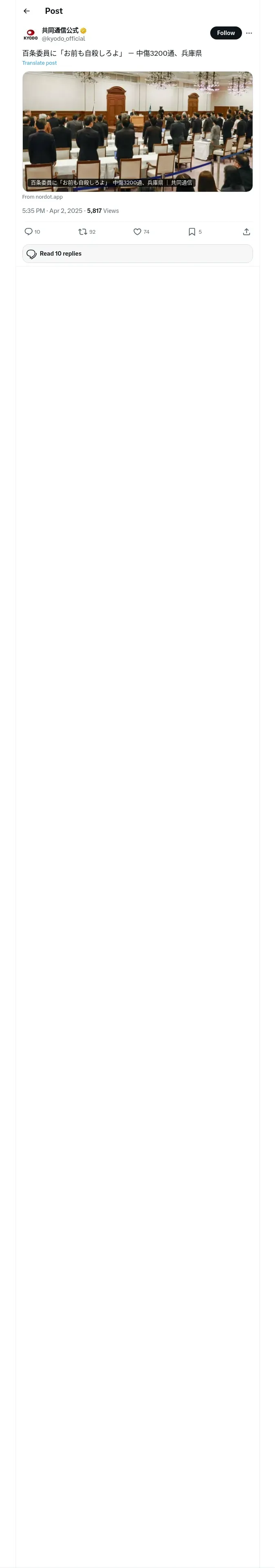 取得元URL: https://x.com:443/kyodo_official/status/1907351116259770701