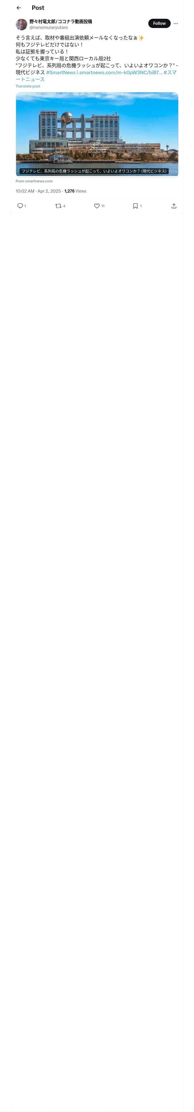 取得元URL: https://x.com:443/nonomuraryutaro/status/1907237165534478814