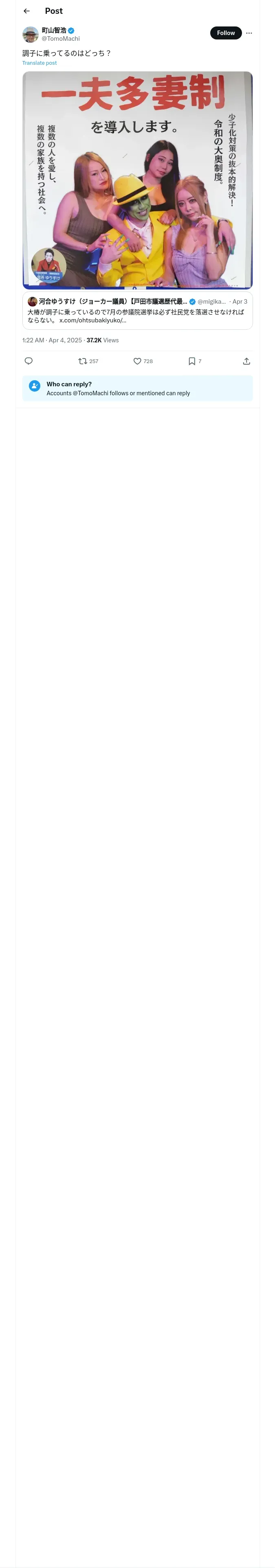 https://x.com:443/TomoMachi/status/1907830996717998256
