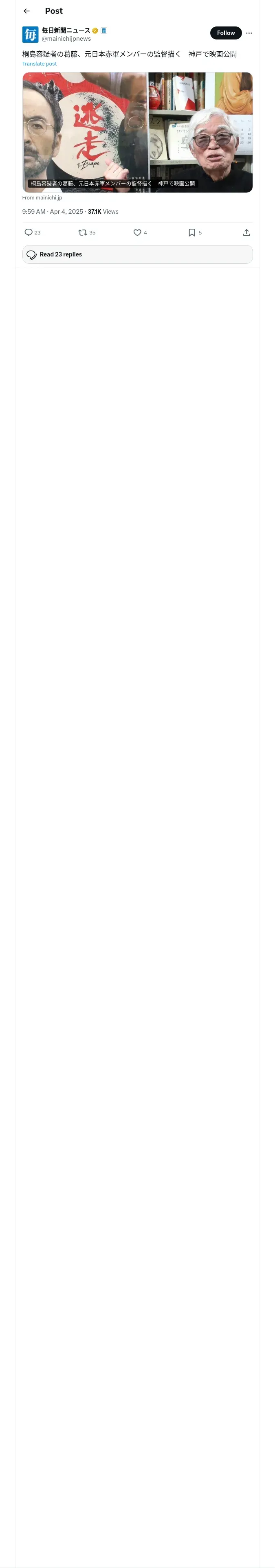 取得元URL: https://x.com:443/mainichijpnews/status/1907961218612212180