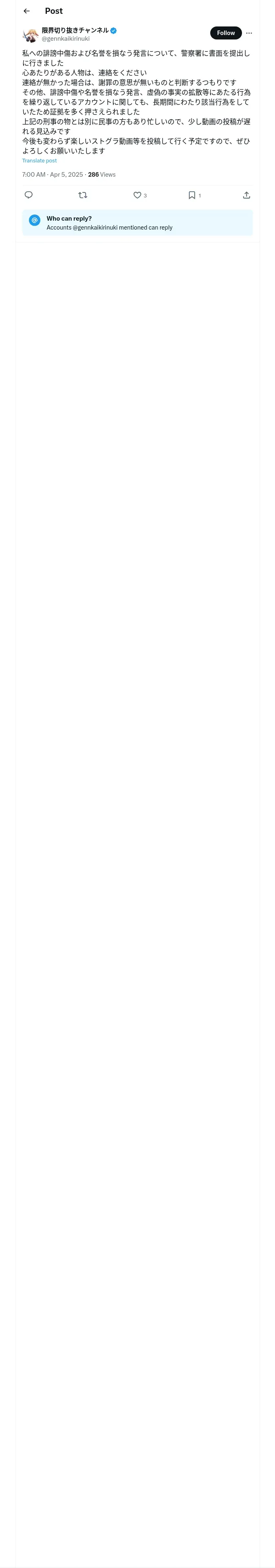 https://x.com:443/gennkaikirinuki/status/1908278409136124033?t=5I23yu8wOvOCuP5lniGNAg&s=19