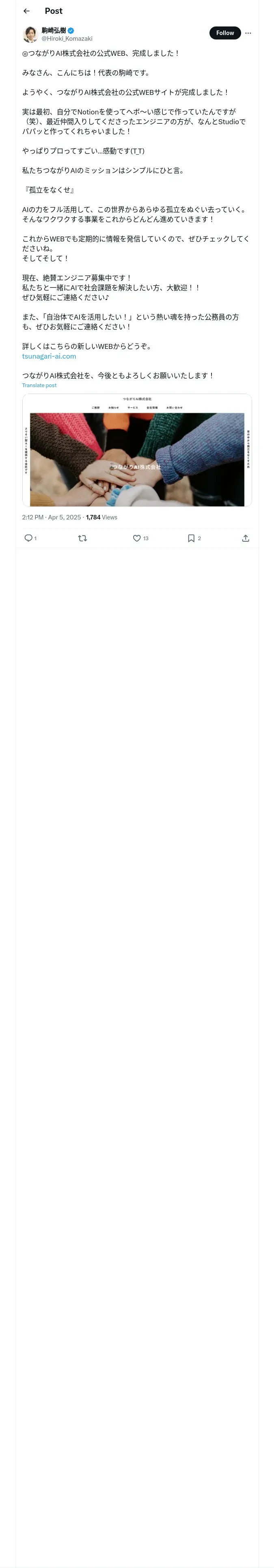 https://x.com:443/Hiroki_Komazaki/status/1908387208735891656
