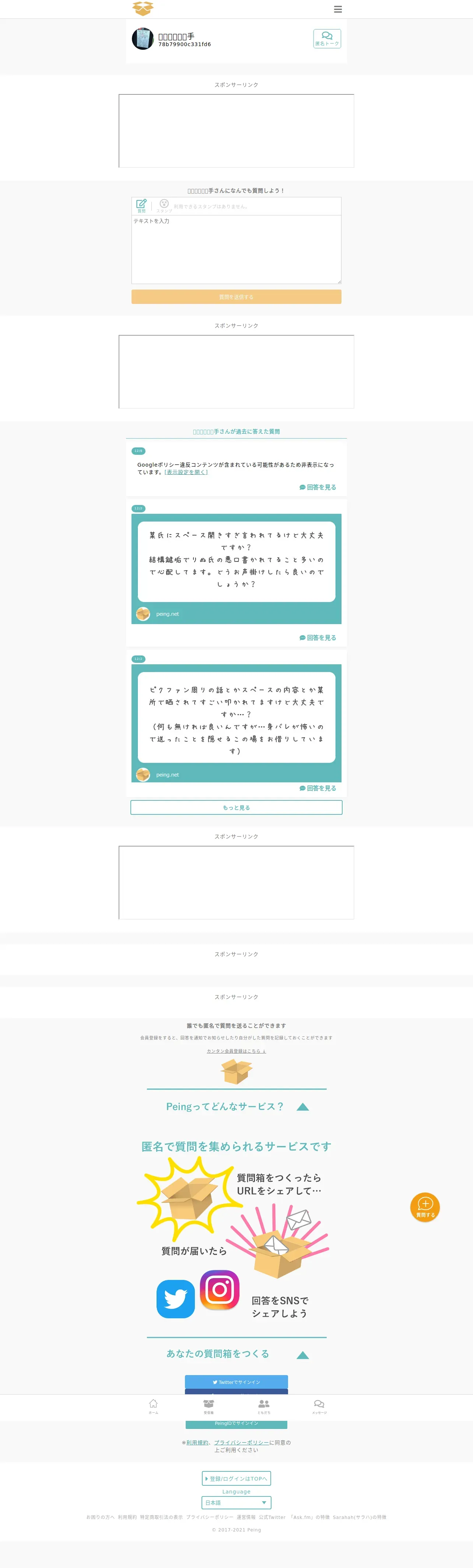 https://peing.net:443/ja/78b79900c331fd6
