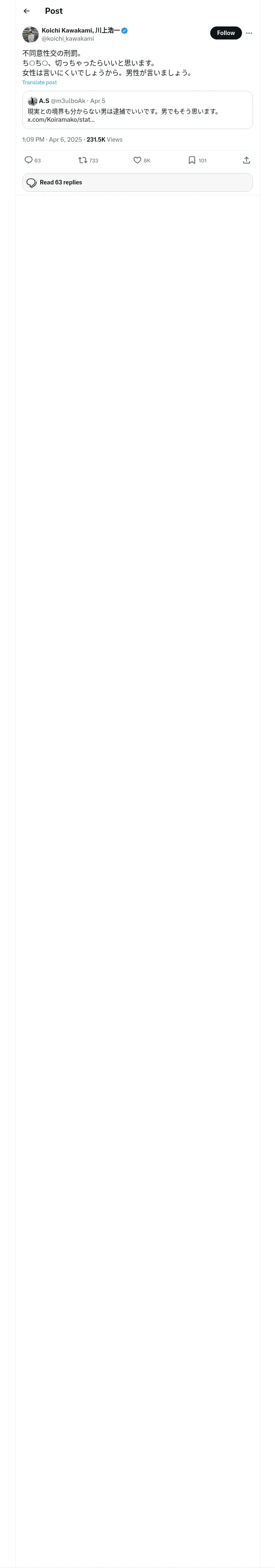取得元URL: https://x.com:443/koichi_kawakami/status/1908733867823096236