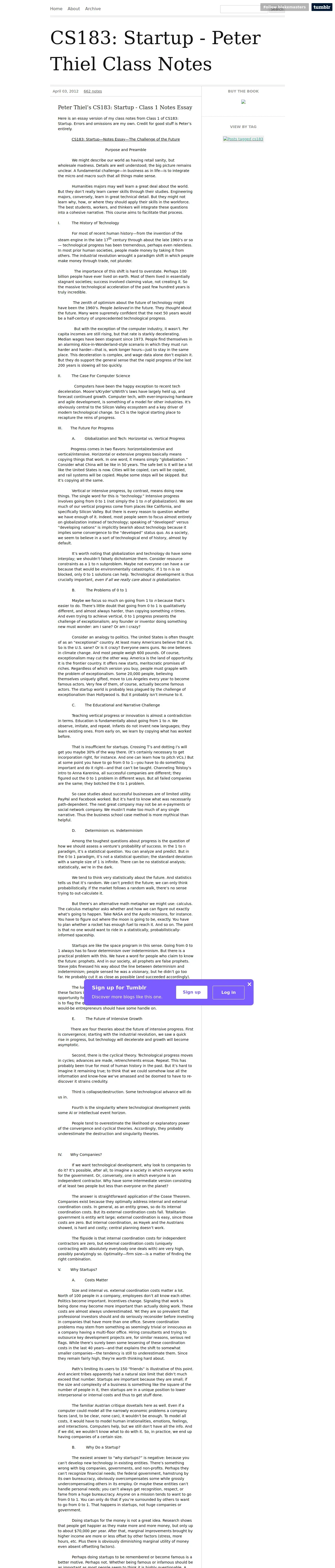 http://blakemasters.tumblr.com/post/20400301508/cs183class1