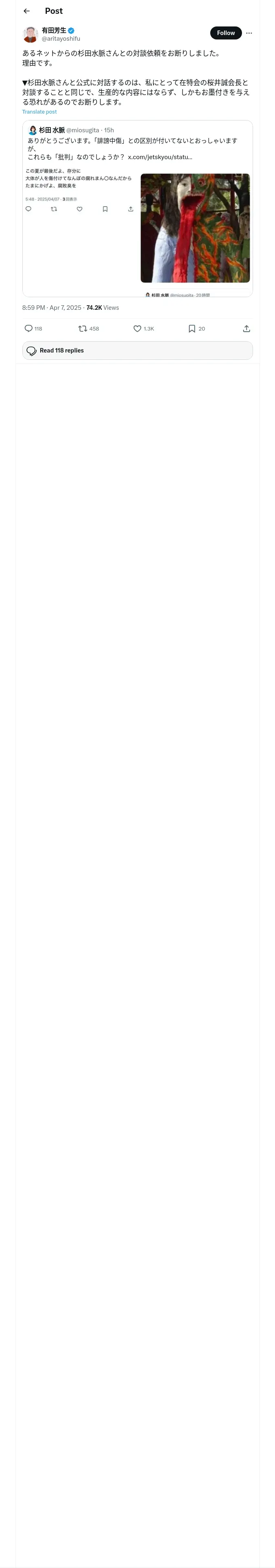 https://x.com:443/aritayoshifu/status/1909214359018197237