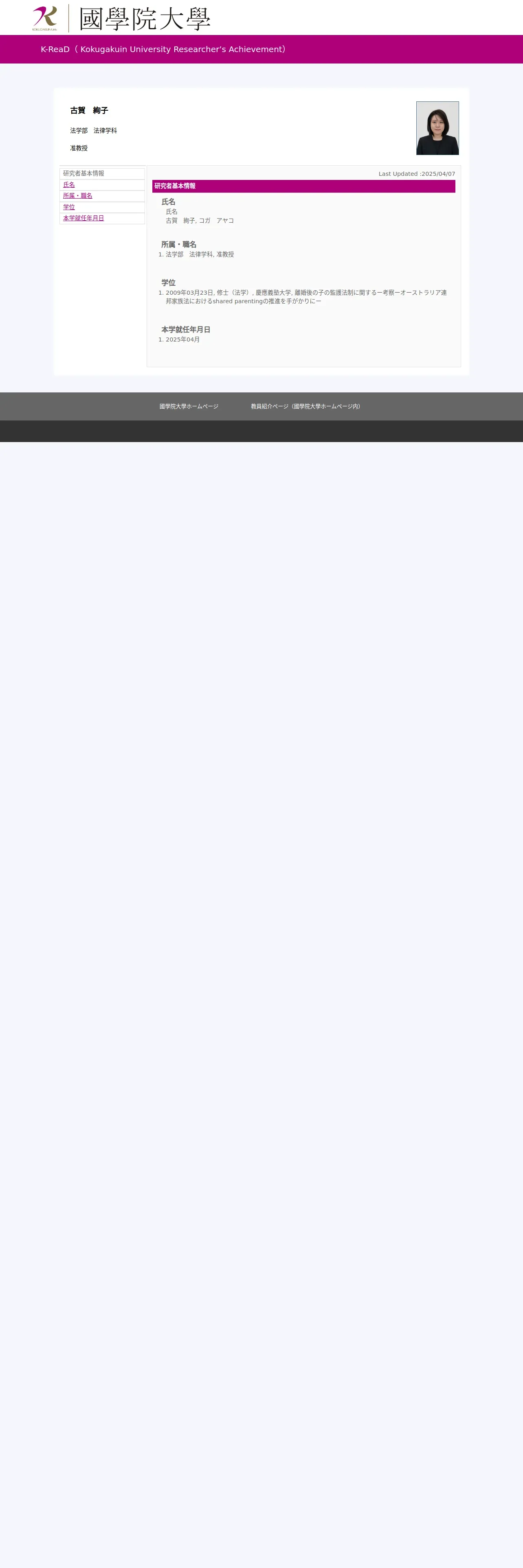 https://k-read2.kokugakuin.ac.jp:443/profile/ja.8d6a1f31c6517385.html