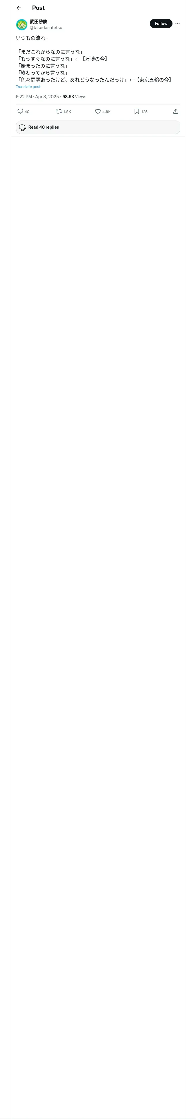 取得元URL: https://x.com:443/takedasatetsu/status/1909537311601443009