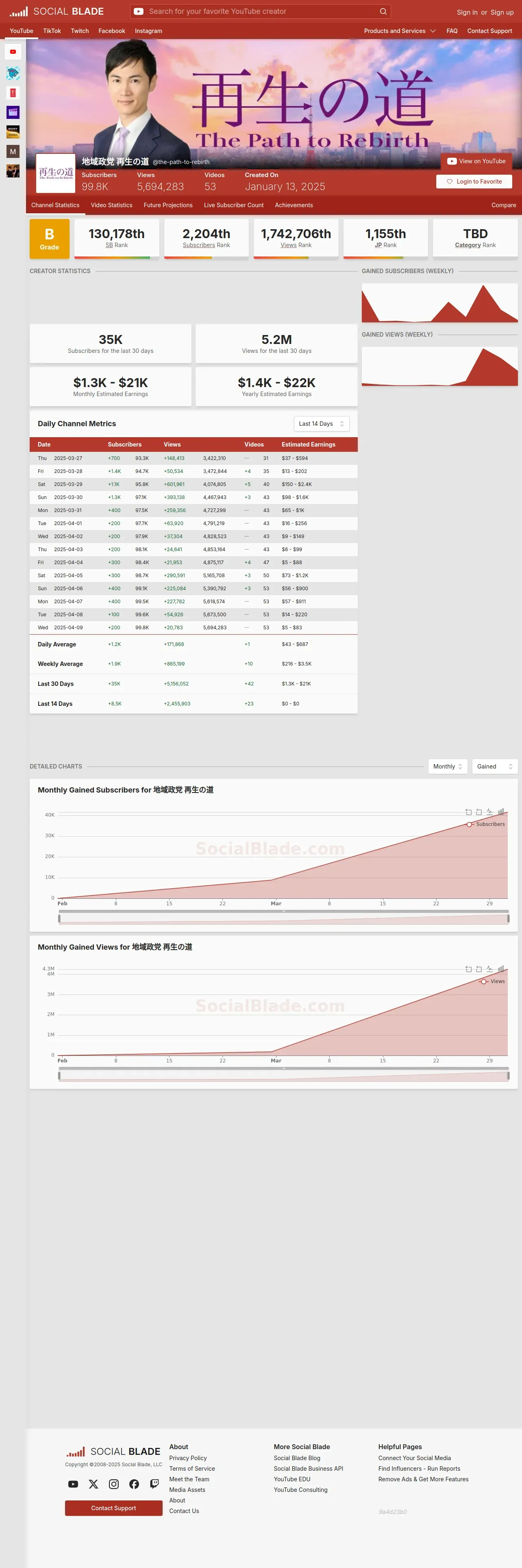 https://socialblade.com:443/youtube/channel/UC9ykbjiUeYAgiuC9uiCmGJg