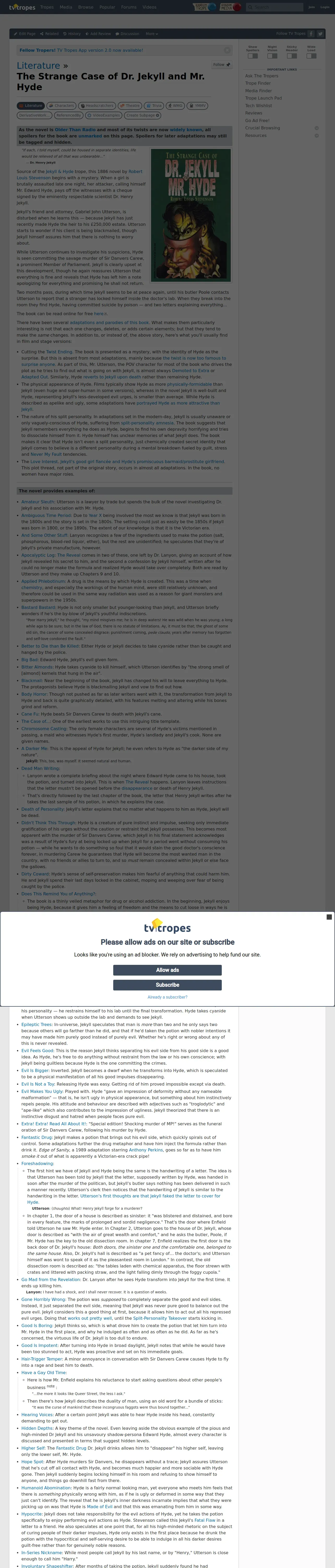 https://tvtropes.org:443/pmwiki/pmwiki.php/Literature/TheStrangeCaseOfDrJekyllAndMrHyde