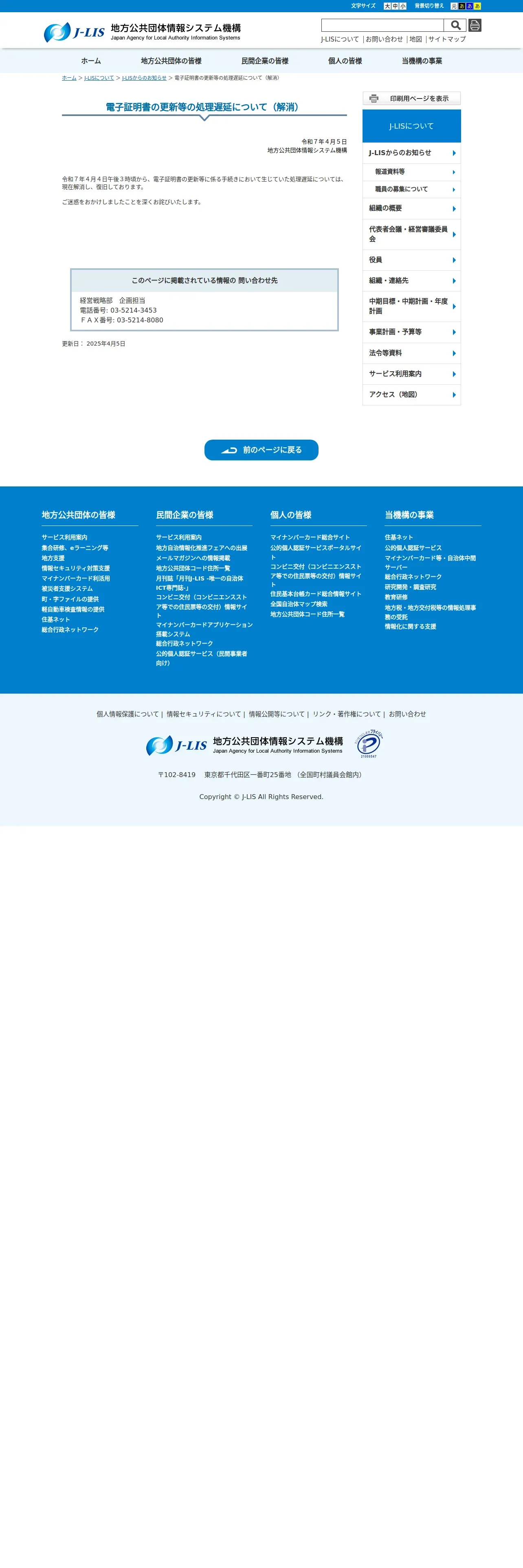 https://www.j-lis.go.jp:443/about/announce/information20250405.html