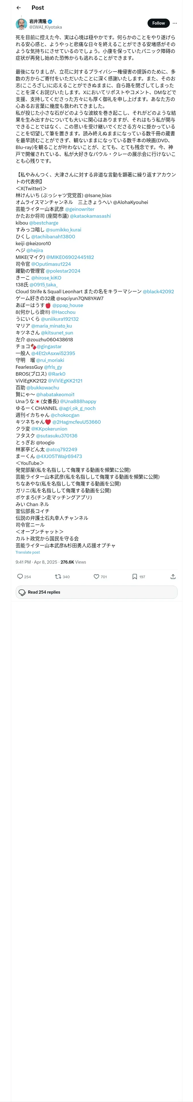 https://x.com:443/IWAI_Kiyotaka/status/1909587444338770289?t=WqDPDFleg-j5wy79JpshGA&s=19