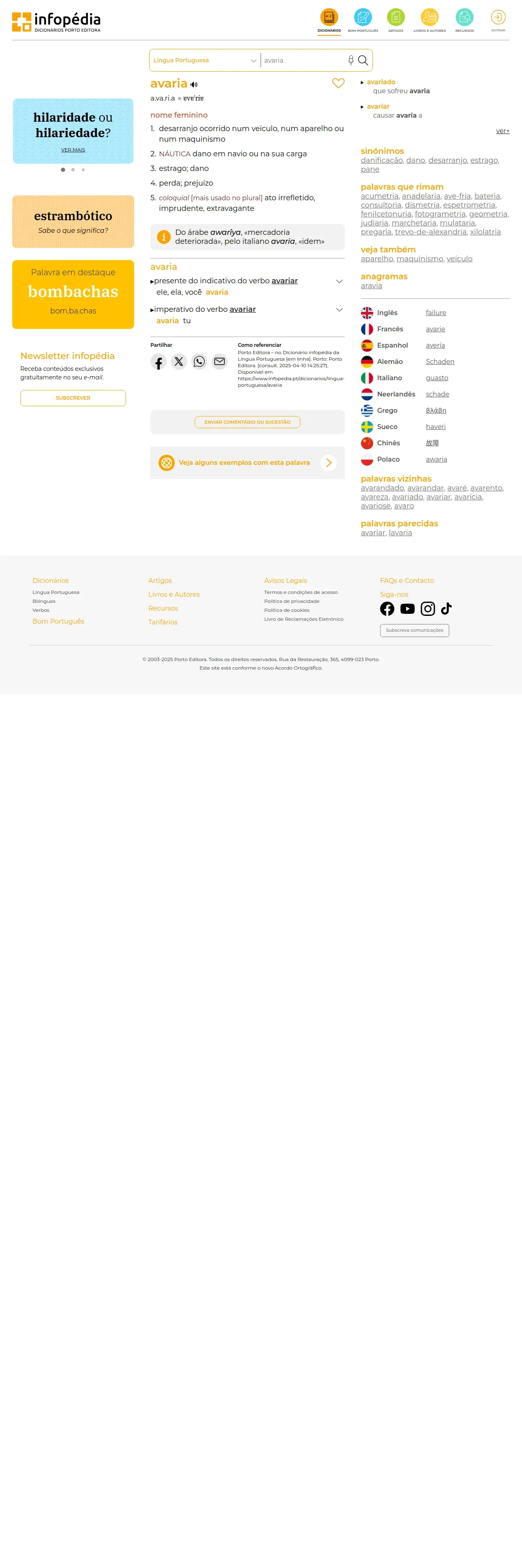 https://www.infopedia.pt:443/dicionarios/lingua-portuguesa/avaria