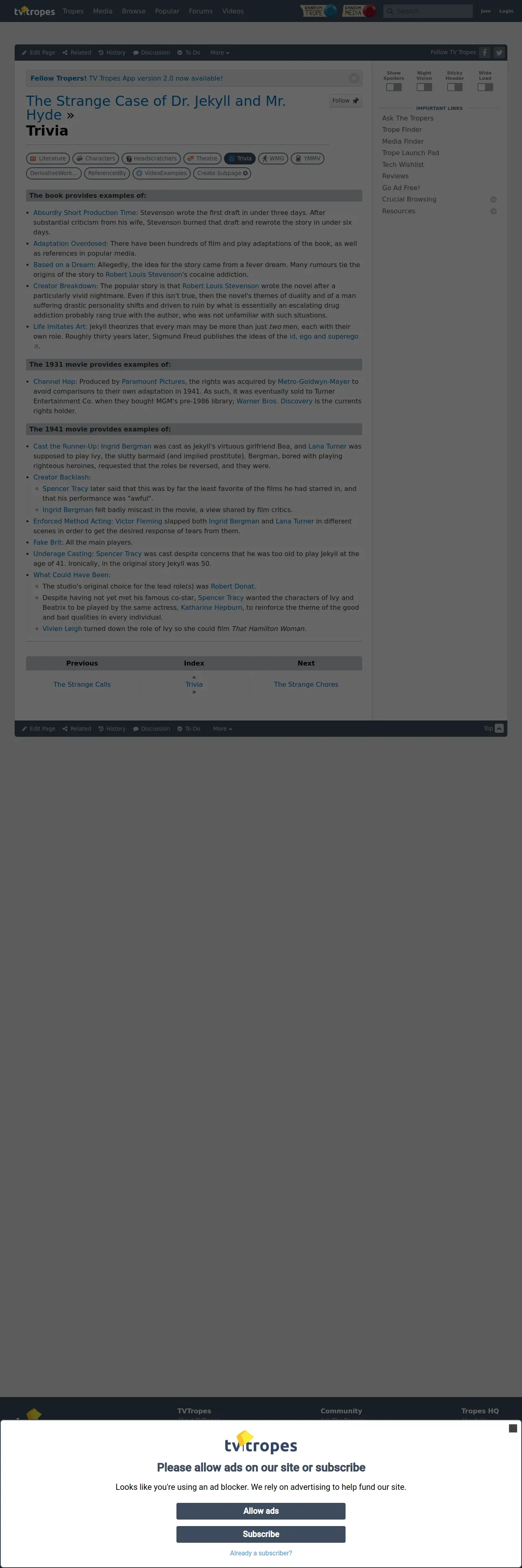 https://tvtropes.org:443/pmwiki/pmwiki.php/Trivia/TheStrangeCaseOfDrJekyllAndMrHyde