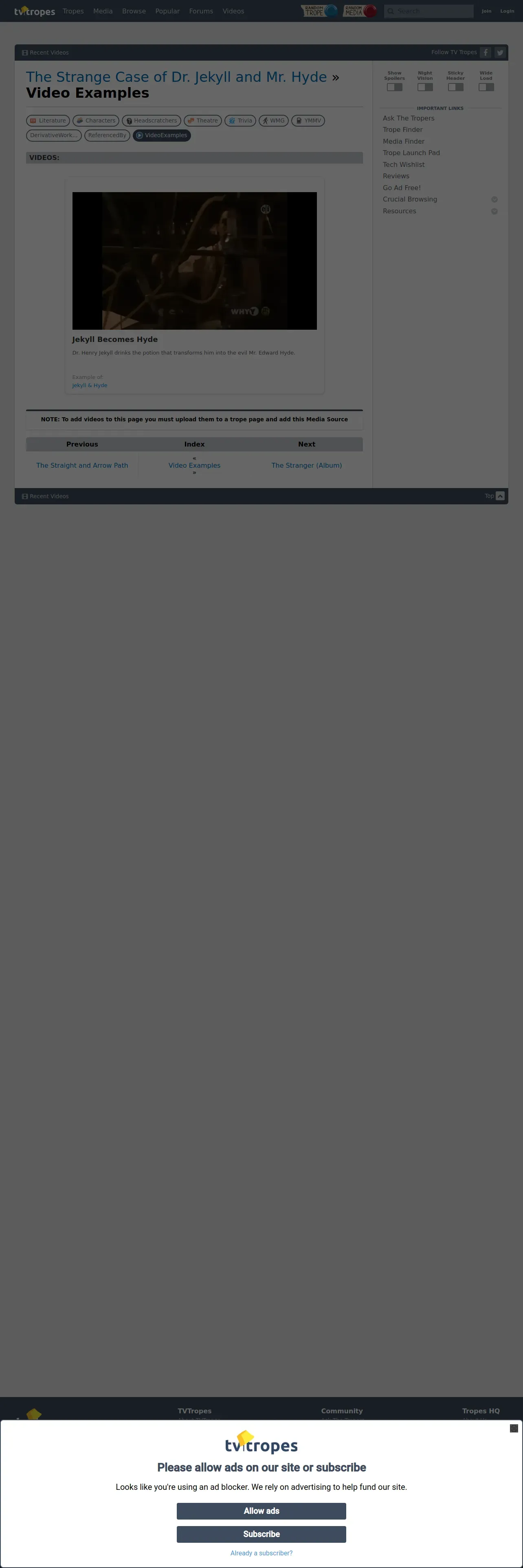 https://tvtropes.org:443/pmwiki/pmwiki.php/VideoExamples/TheStrangeCaseOfDrJekyllAndMrHyde
