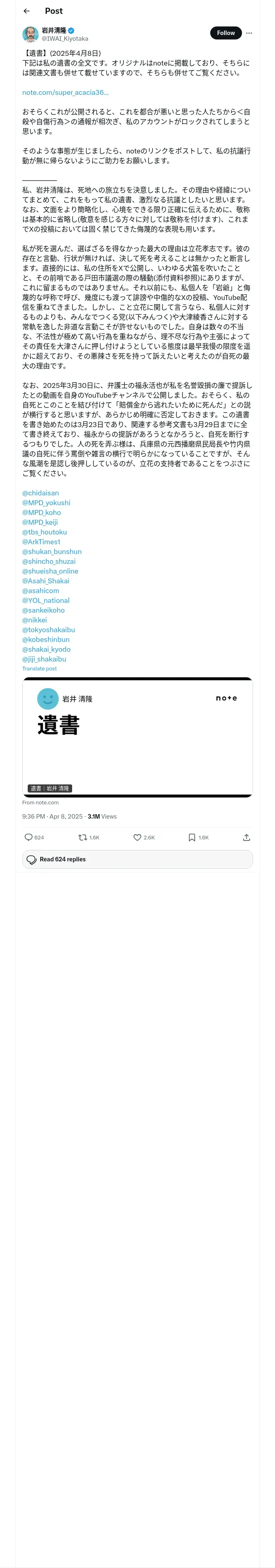 https://x.com:443/IWAI_Kiyotaka/status/1909586165663252531?t=taRY4mReOdwlOdq78TNKUg&s=19