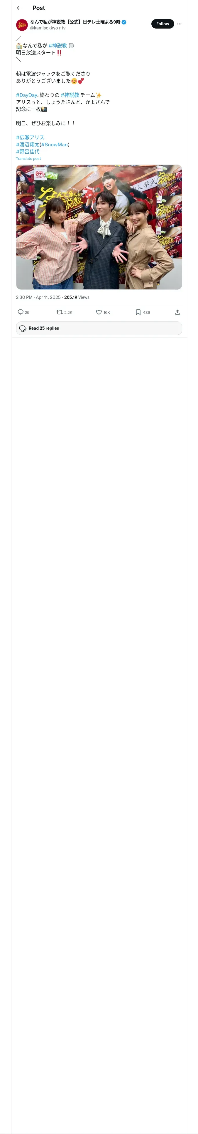 https://x.com:443/kamisekkyo_ntv/status/1910566024614756669