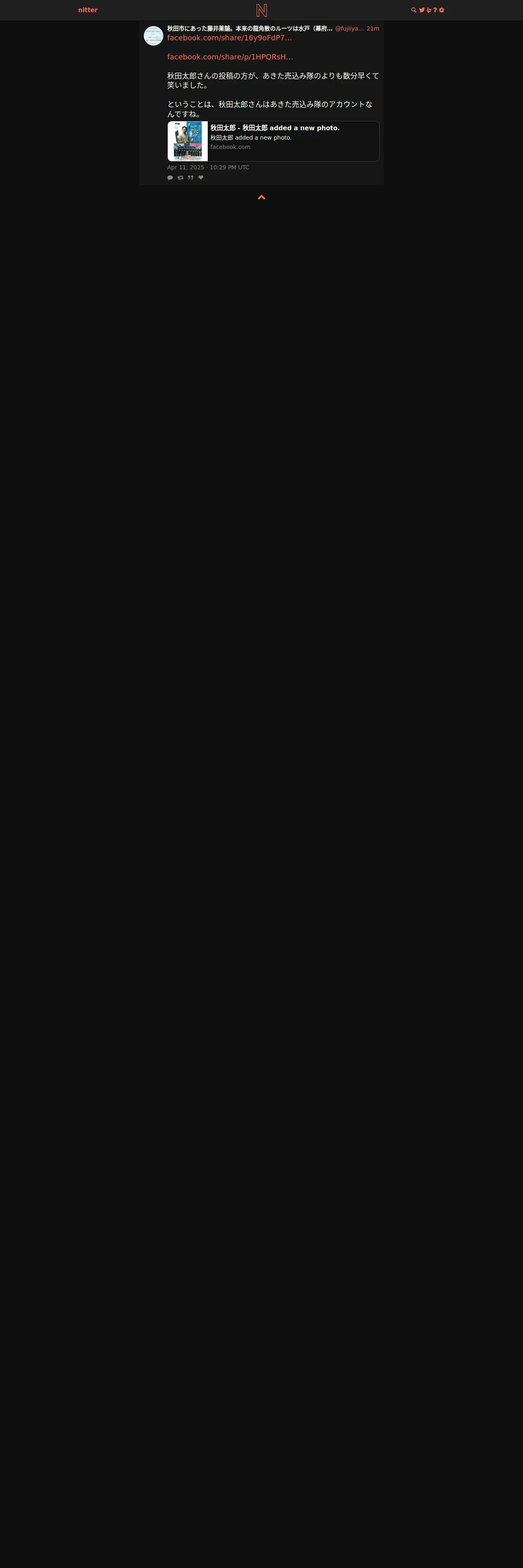 取得元URL: https://nitter.net:443/fujiiyakuho/status/1910822550437024064