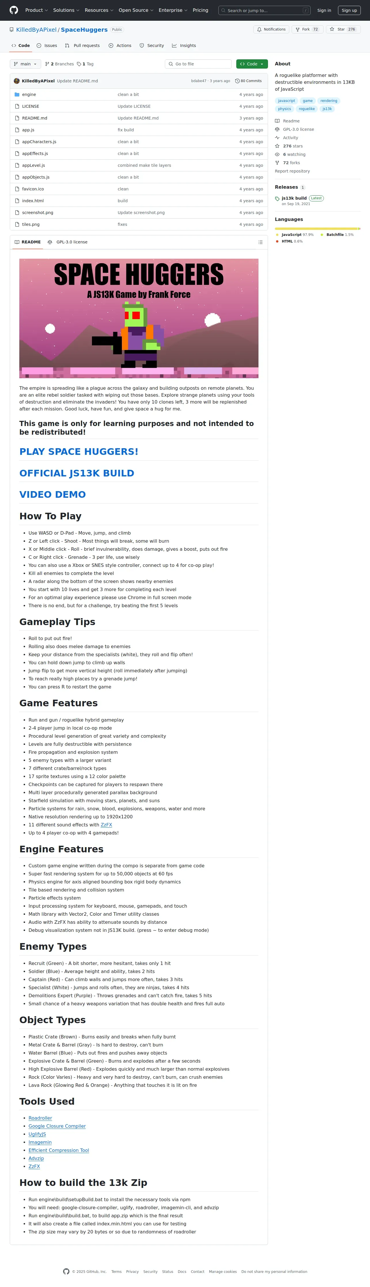 https://github.com:443/KilledByAPixel/SpaceHuggers