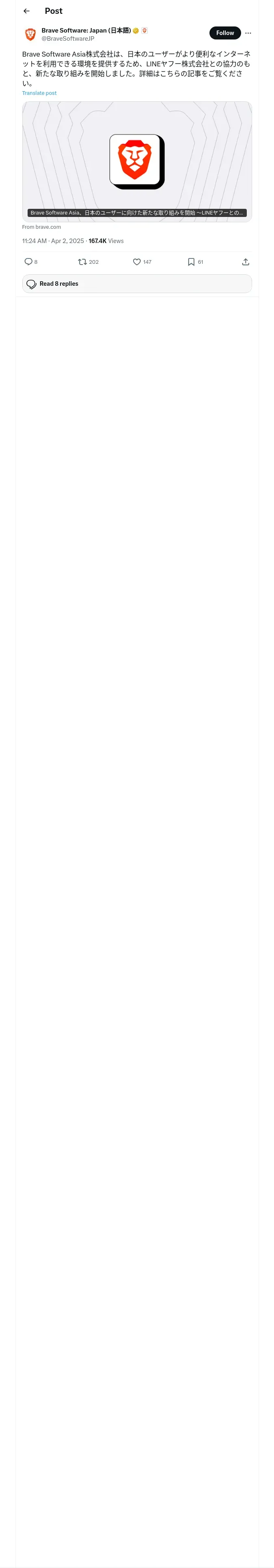 https://x.com:443/BraveSoftwareJP/status/1907257902534180961