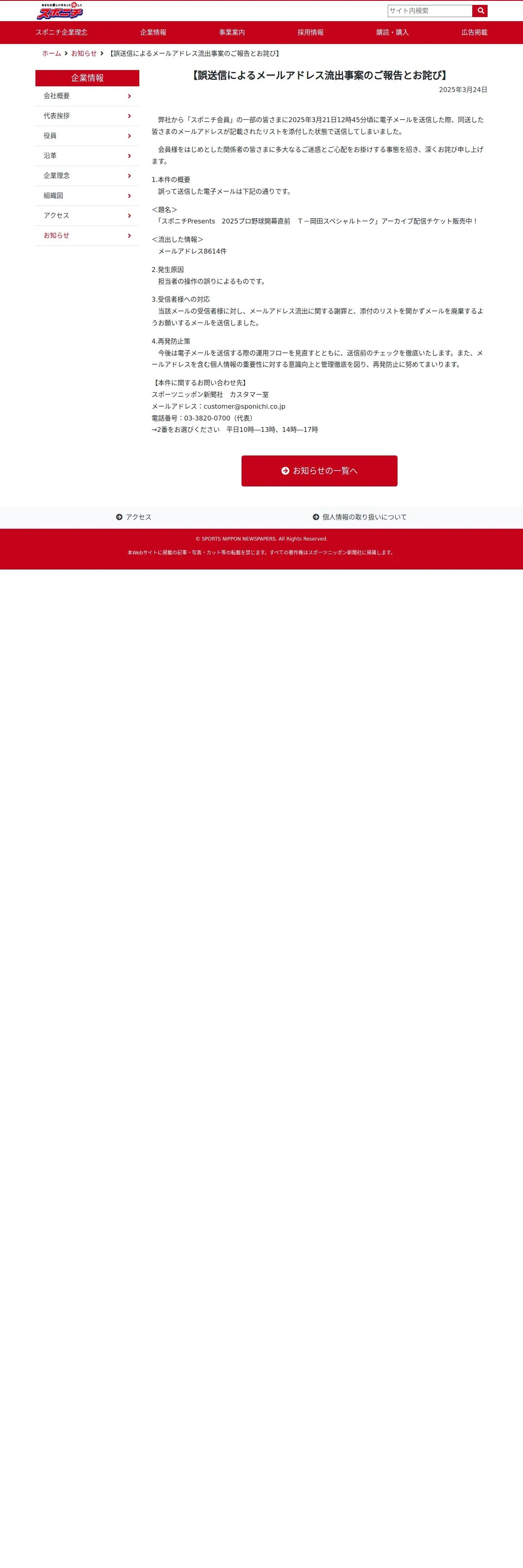 https://sponichi.jp:443/%e3%80%90%e8%aa%a4%e9%80%81%e4%bf%a1%e3%81%ab%e3%82%88%e3%82%8b%e3%83%a1%e3%83%bc%e3%83%ab%e3%82%a2%e3%83%89%e3%83%ac%e3%82%b9%e6%b5%81%e5%87%ba%e4%ba%8b%e6%a1%88%e3%81%ae%e3%81%94%e5%a0%b1%e5%91%8a/