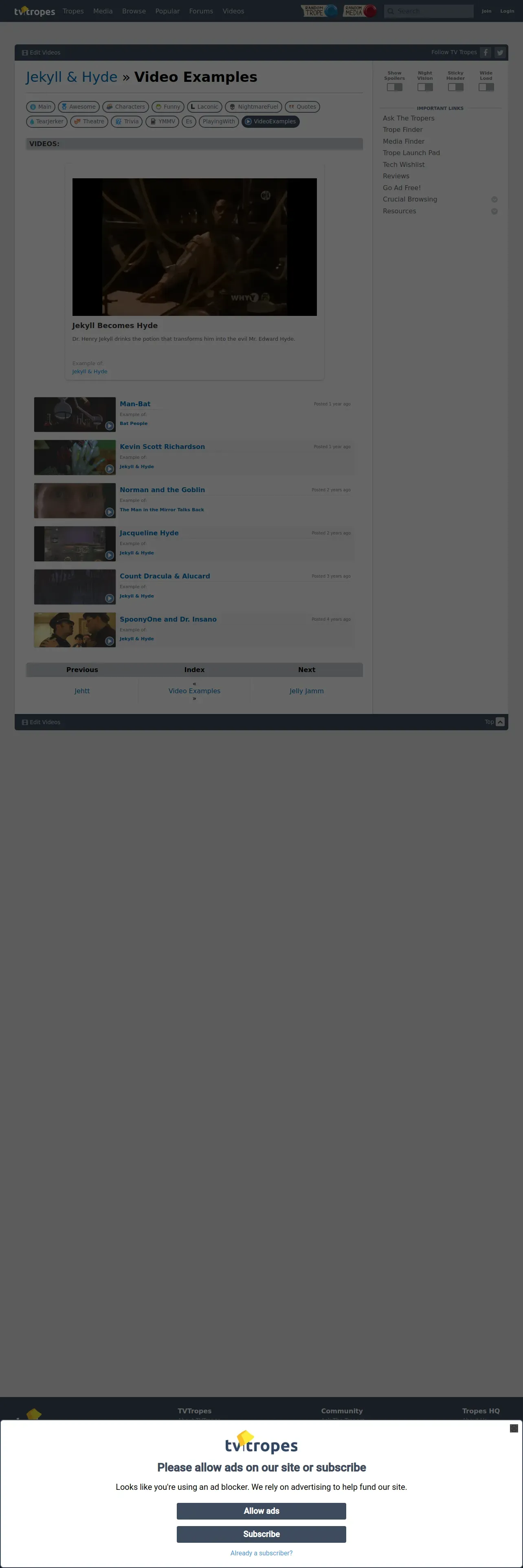 https://tvtropes.org:443/pmwiki/pmwiki.php/VideoExamples/JekyllAndHyde