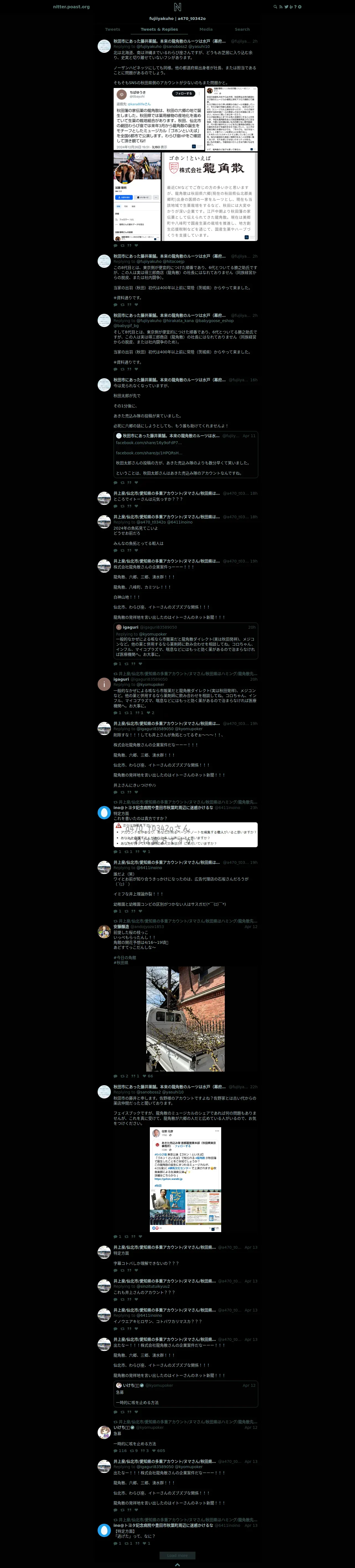 取得元URL: https://nitter.poast.org:443/fujiiyakuho,a470_t0342o/with_replies