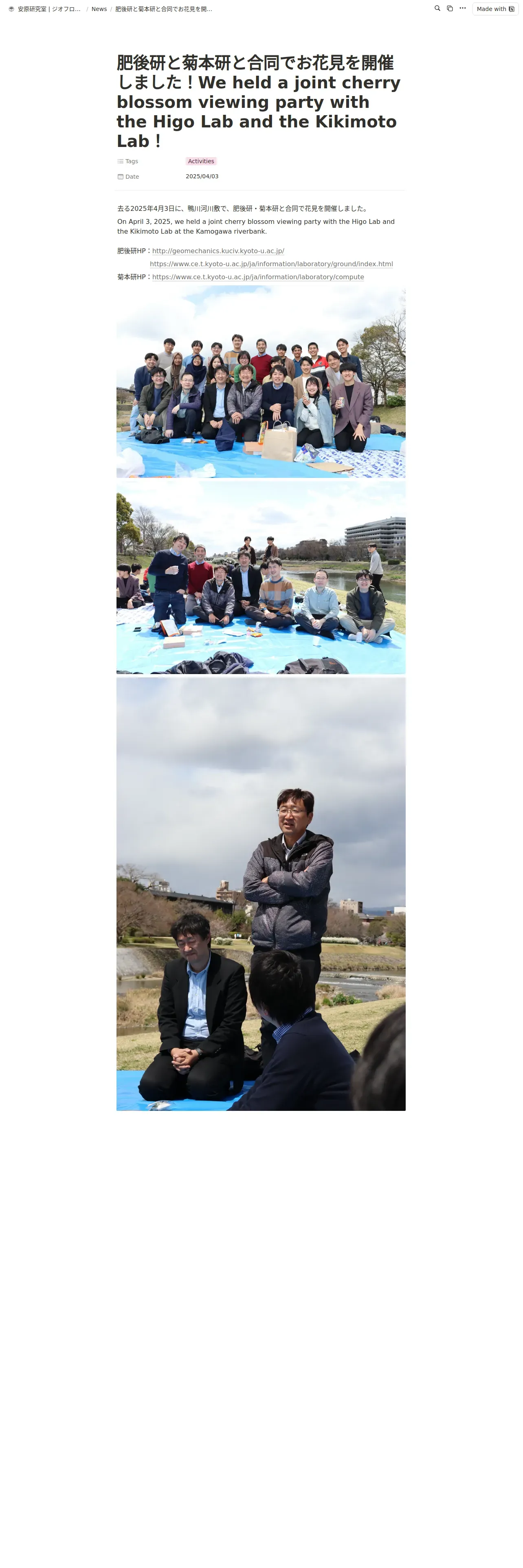 https://geofront-kyoto-u.notion.site:443/We-held-a-joint-cherry-blossom-viewing-party-with-the-Higo-Lab-and-the-Kikimoto-Lab-1d5aea4dabae80408c48d3d1302dfcc1