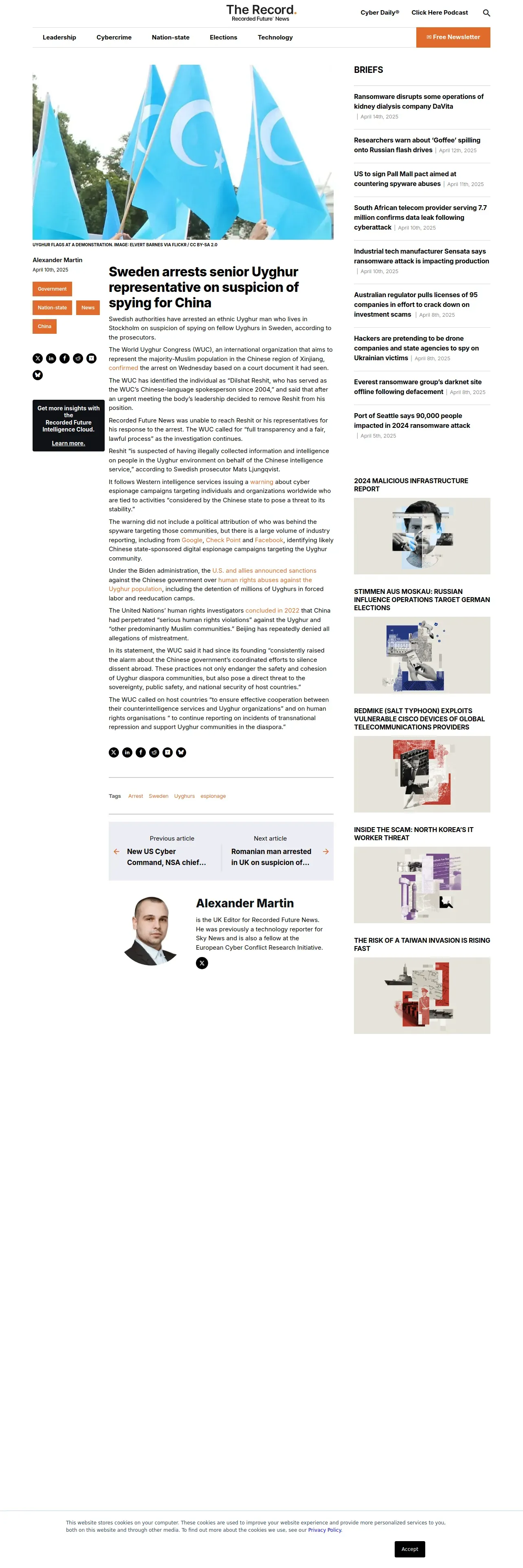 https://therecord.media:443/sweden-arrest-spying-on-uyghurs-china