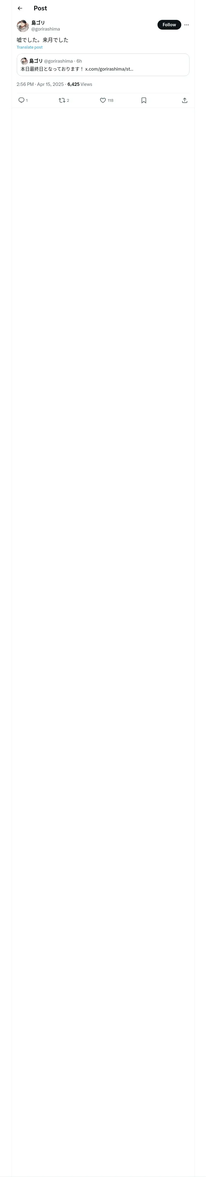 https://x.com:443/gorirashima/status/1912022107221025225